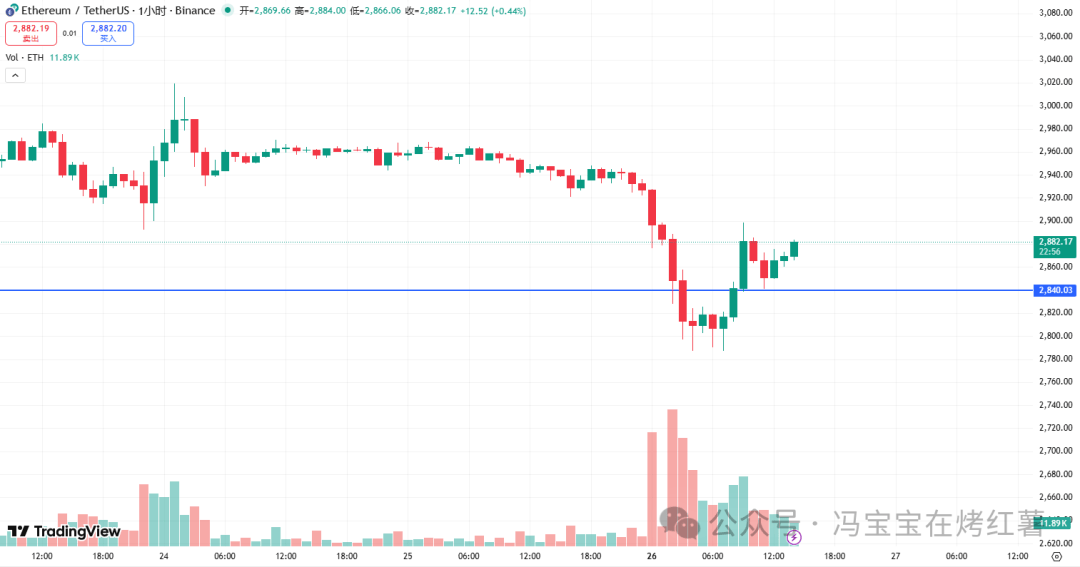 2. Ethereum (ETH): Price around 2882, down 1.93% in the last 24 hours.