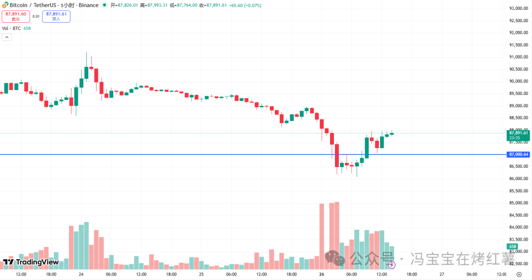 Today, keep a close eye on the 87,000 level. As long as it doesn't break below this level on the 1-hour chart, the rebound can continue. The next resistance levels to watch are 88,000, 89,300, and 90,400.