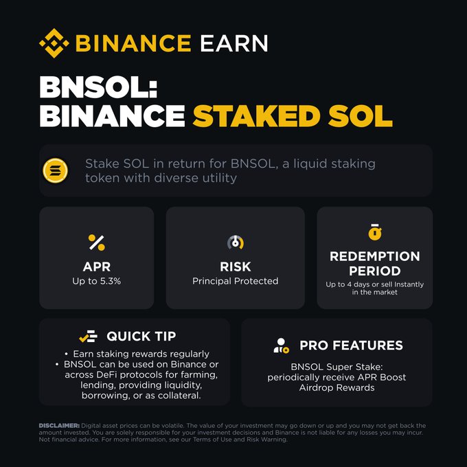 Stake SOL. Get BNSOL. Earn rewards and stay liquid across Binance and DeFi. Stake SOL 👉 app.binance.com/solana-staking...…