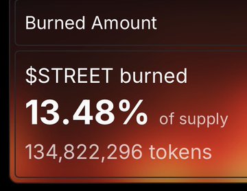 Another .2% of $STREET was burned from that transaction now bringing the total to 13.5% burned