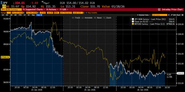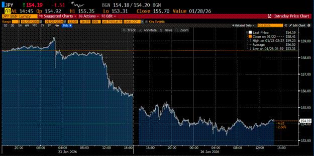 On Friday, 23 January 2026 the BOJ held rates constant when by all measures they should have raised rates to defend the currency and the bond market. I’m assuming Ueda-domo called his gaijin daddy across the Pacific for some help, which kicked off the Fed-Treasury intervention talk.