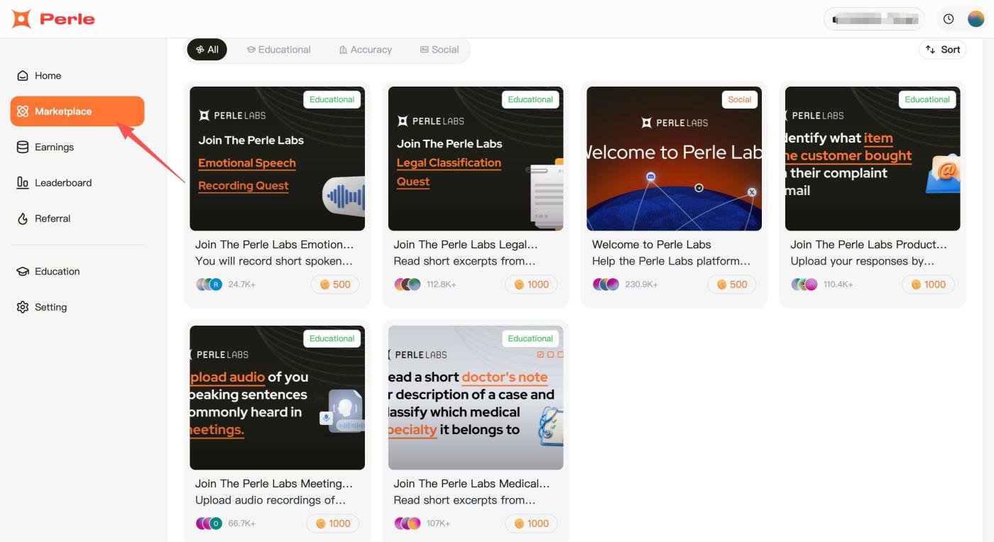 STEP 2. Click “Marketplace”, and there will be 6 tasks to participate in.