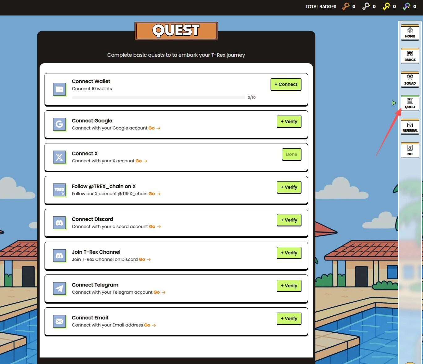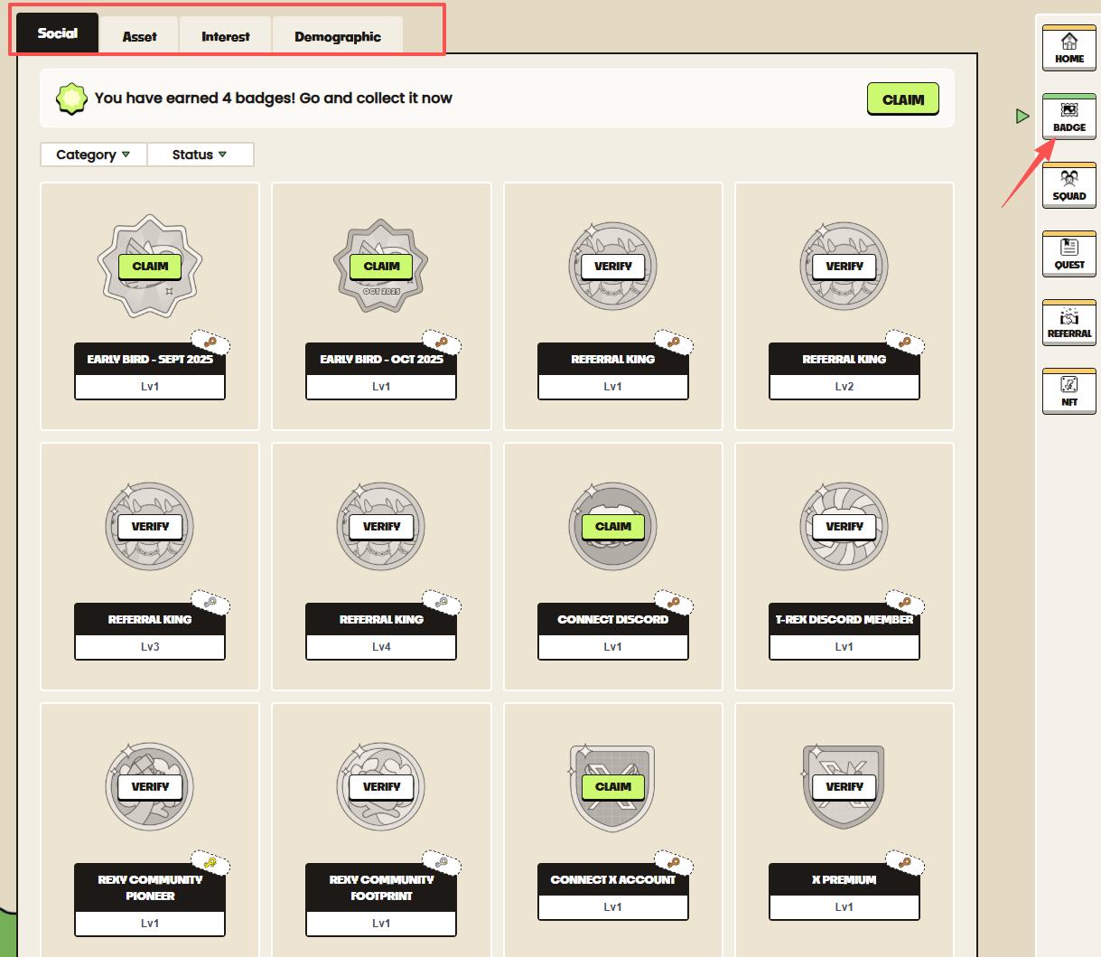 STEP 4. Click “BADGE” on the right to complete the corresponding task and unlock the corresponding badge.