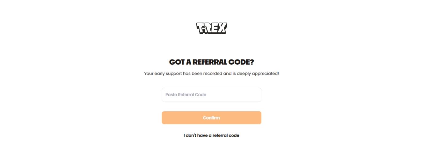 STEP 1. Go to the interactive website (link: https://www.trex.xyz/auth/portal-login ), create an account, and enter the invitation code 7DMAZO4Z to log in.