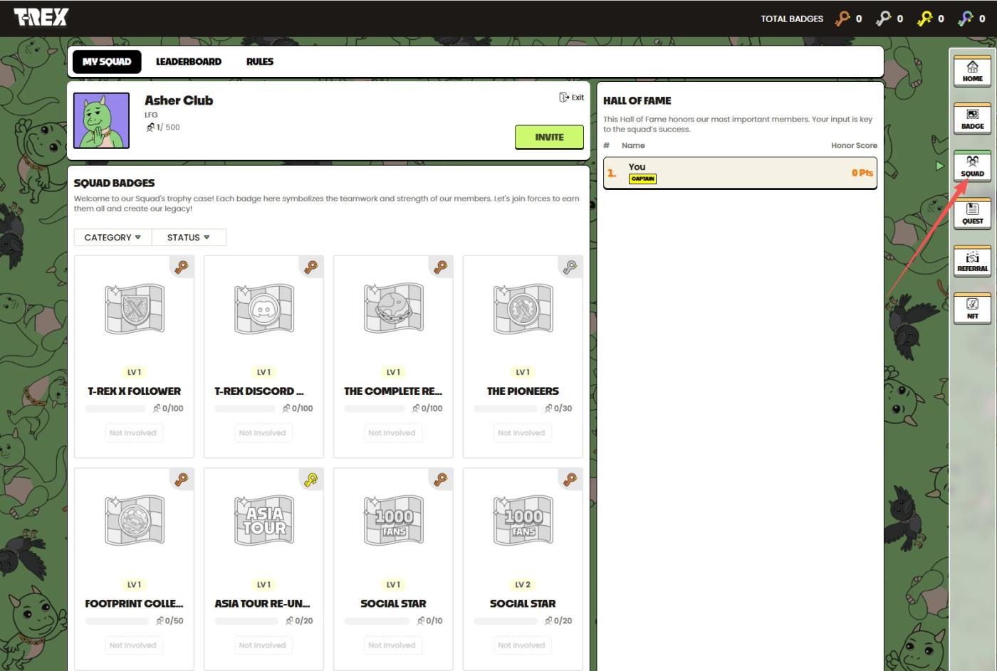 STEP 3. Click “SQUAD” on the right, select a team to join, or join my team via the invitation link: s.trex.xyz/ll1g9K .