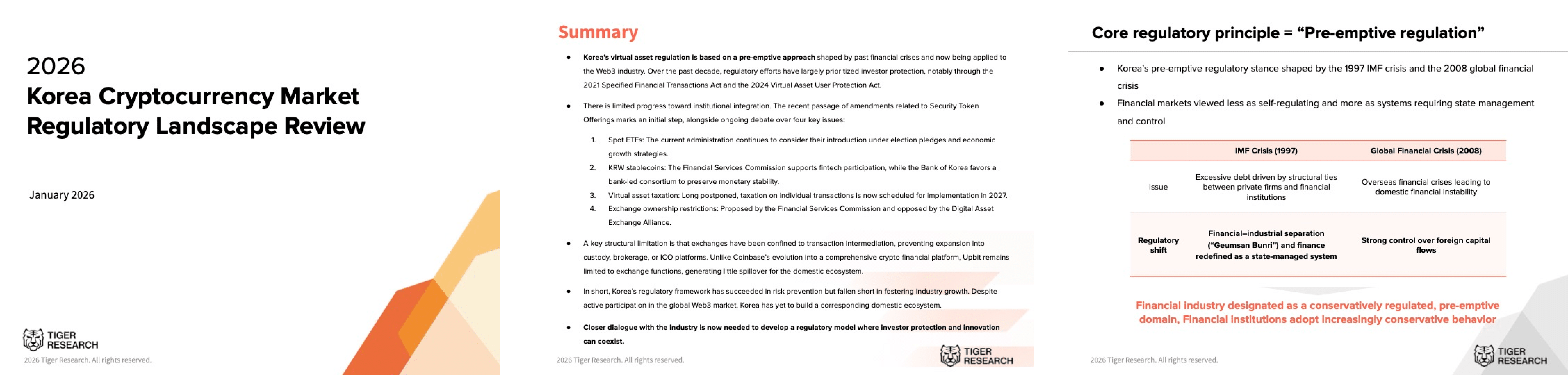 Korea’s virtual asset regulation is based on a pre-emptive approach shaped by past financial crises and now being applied to the Web3 industry. Over the past decade, regulatory efforts have largely prioritized investor protection, notably through the 2021 Specified Financial Transactions Act and the 2024 Virtual Asset User Protection Act.