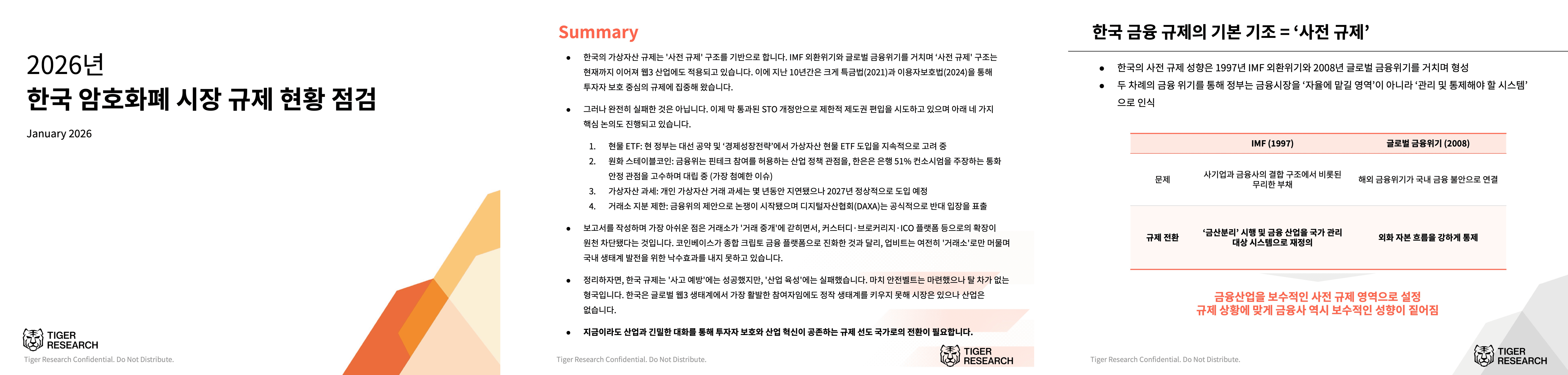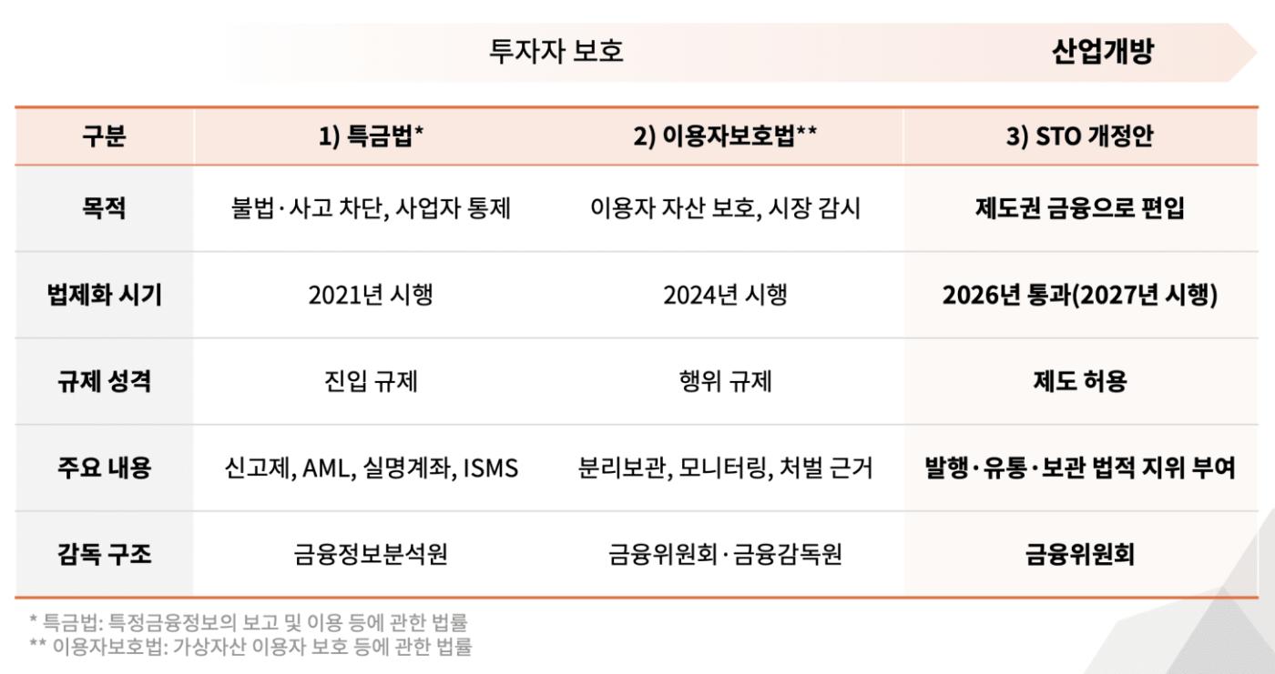 Korea's virtual asset regulation is based on a "preemptive regulation" structure. This "preemptive regulation" structure has persisted through the IMF foreign exchange crisis and the global financial crisis, and continues to apply to the web3 industry. Accordingly, over the past decade, the Special Financial Transactions Act (2021) and the User Protection Act (2024) have focused on investor protection-focused regulations.