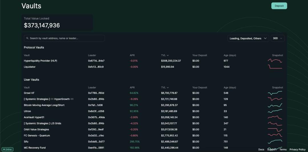 - Protocol vaults (such as Hyperliquidity Provider, or HLP for short): These are directly operated by the platform and earn a share of transaction fees through market making, clearing, and other operations. Any user can deposit USDC and share in the vault's profits and losses.
