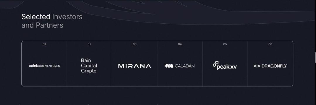 The project has received support from numerous industry-leading institutions, including Bain Capital Crypto, Peak XV (formerly Sequoia India/Southeast Asia), Coinbase Ventures, Dragonfly, Hack VC, North Island Ventures, Caladan, Mirana Ventures, Zoku Ventures, and others.