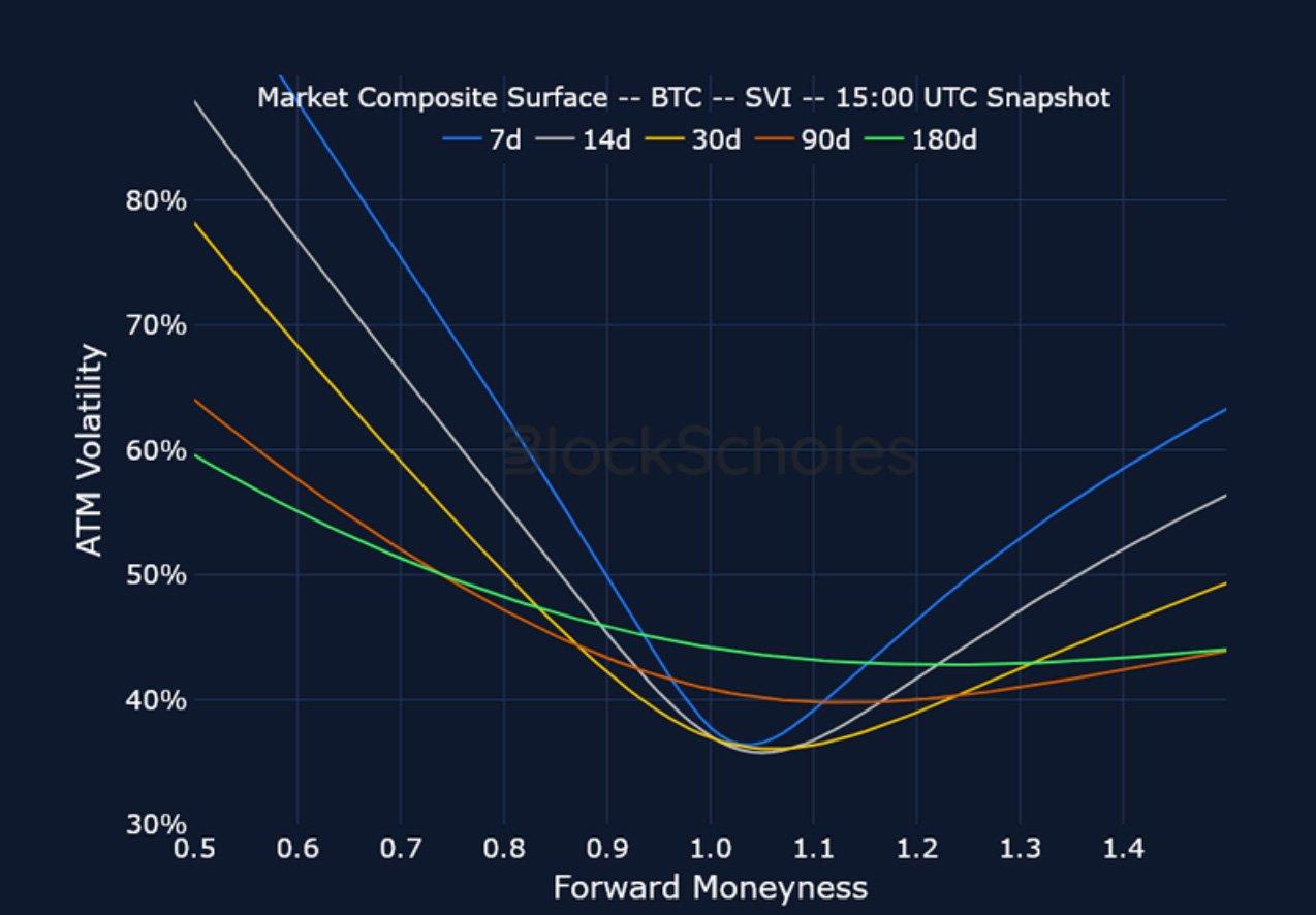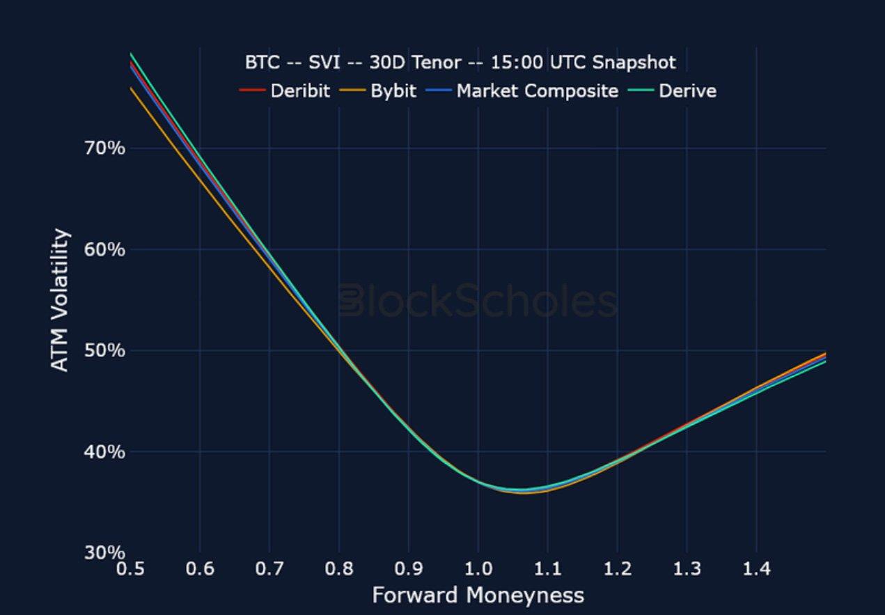 BTC SVI ATM IMPLIED VOLATILITY – Short-dated IV rose last week amidst broader macro tensions, though longer-dated options were mostly unchanged.