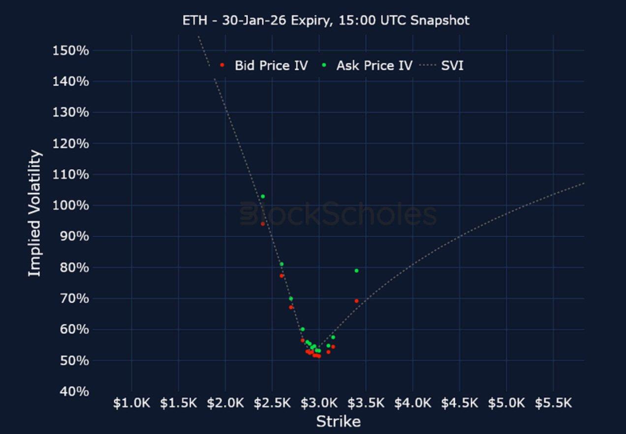 ETH SVI, 30D TENOR – 9:00 UTC Snapshot.