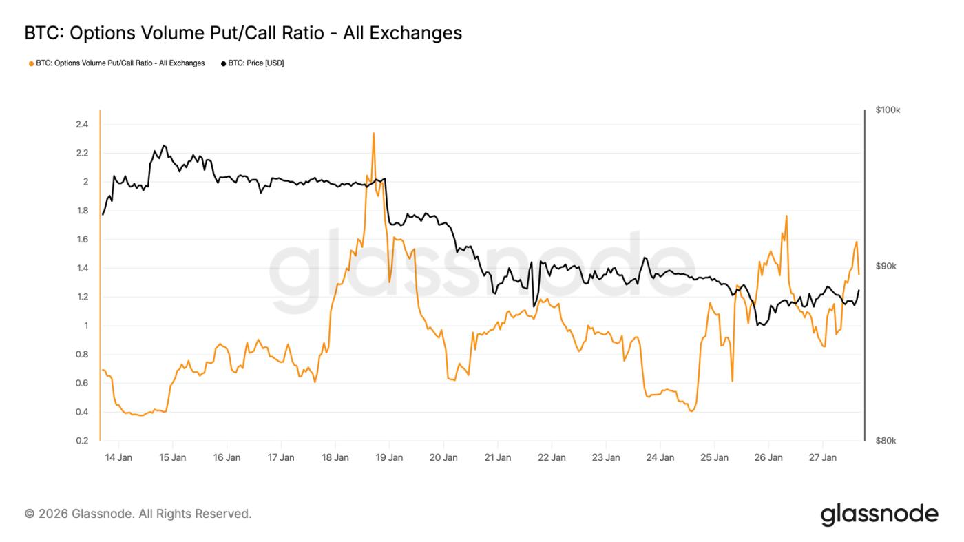Options positions reinforced market caution: the skew shifted to bearish, short-term protection demand increased, and traders' Gamma turning negative increased the risk of heightened price volatility.