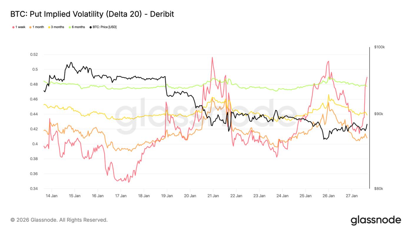 This reflects the market's reaction to Bitcoin's drop from the mid-range of $90,000 to the high-range of $80,000: hedging against short-term downside risk while simultaneously being willing to sell long-term downside protection. This structure suggests that the market is only cautious in the short term, and long-term risk expectations have not worsened.