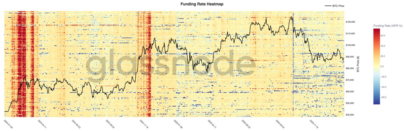 Perpetual funding rates across most exchanges remained neutral, despite significant price volatility. This indicates that leverage has been cleared, long and short positions are relatively balanced, and neither side is continuously paying high funding fees.