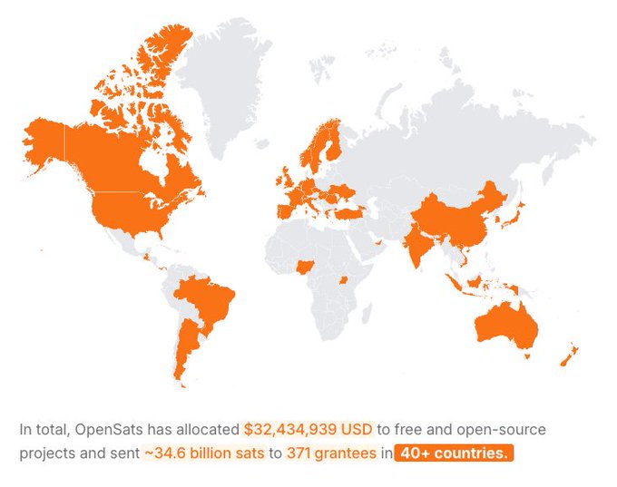 OpenSats has sent $32,434,939 worth of bitcoin to 371 open source contributors in 40+ countries.