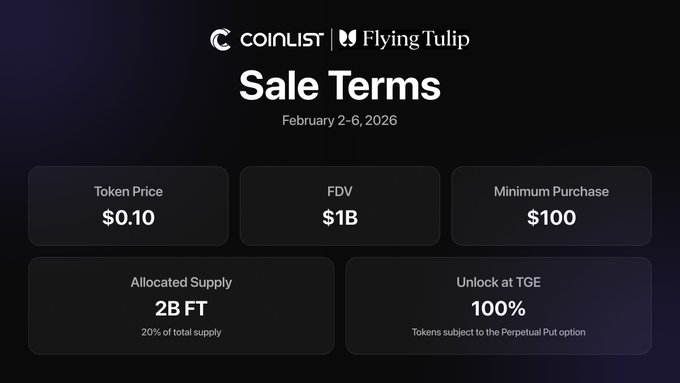 Flying Tulip on CoinList. $FT upside with full redemption rights. Sale opens Monday at 16:00 UTC. Register: coinlist.co/flying-tulip