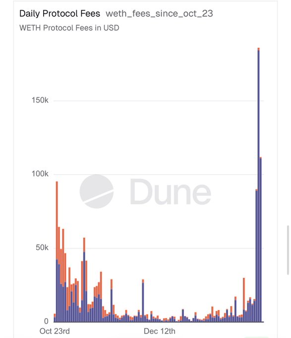 Fees have been at October levels for the week whilst price is 4x below what it was.