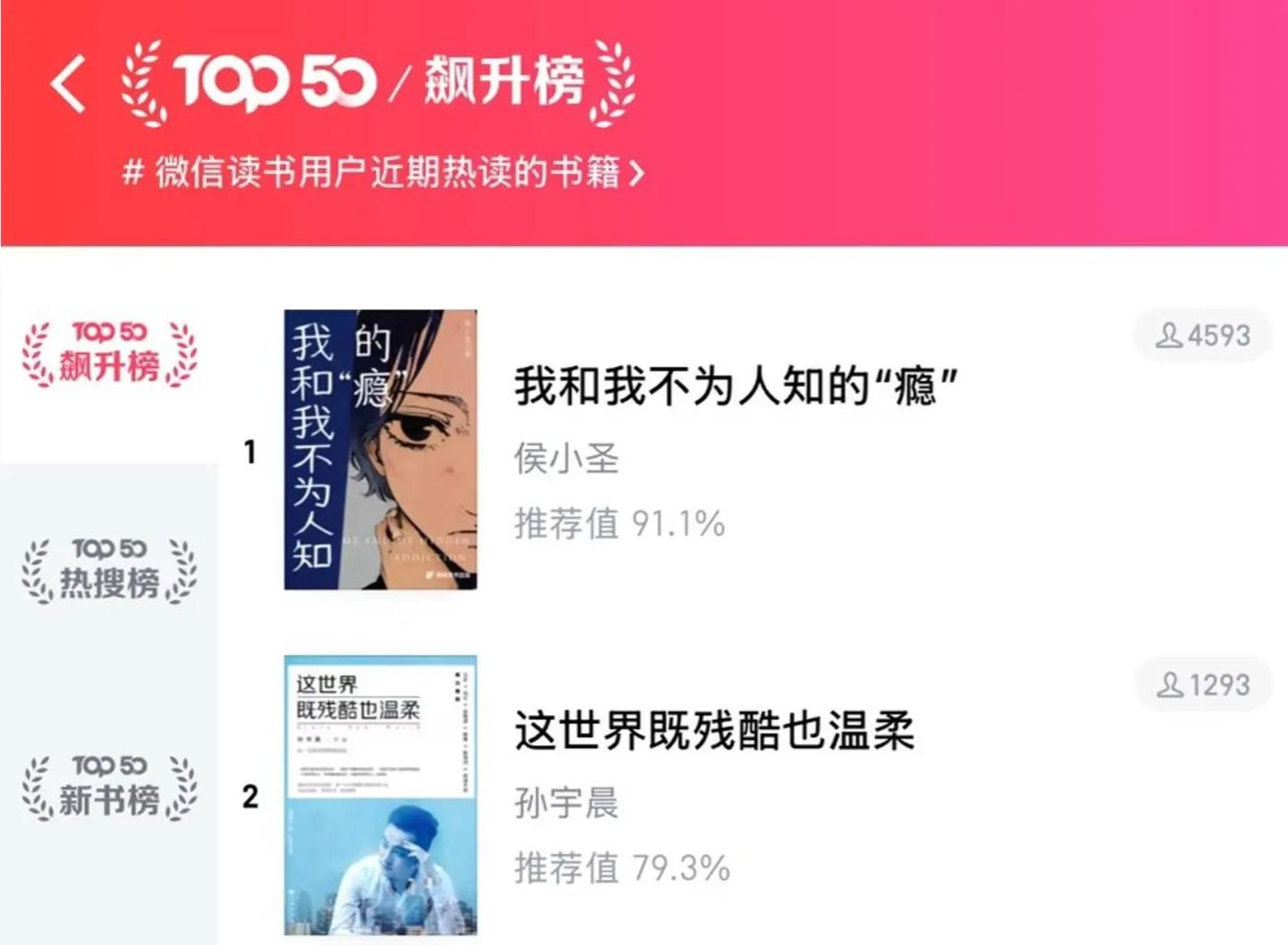 "This World Is Both Cruel and Gentle" ranked second on WeChat Reading's Rising Star List.