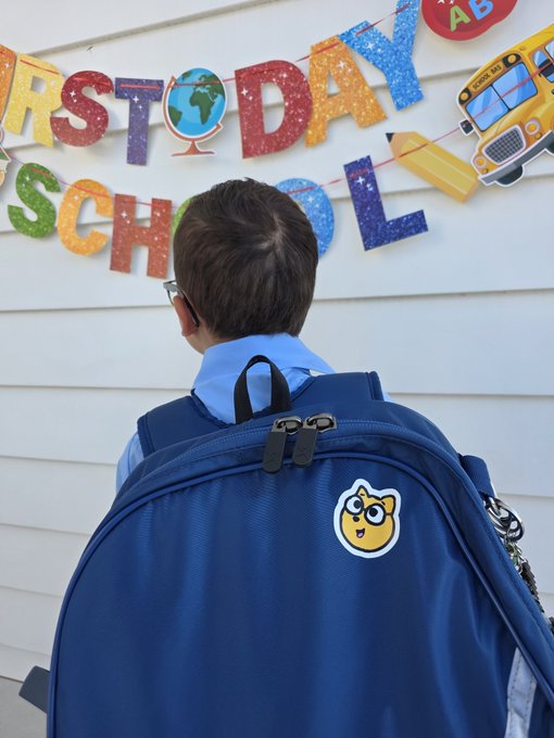 my son's first day of school today. he was a little nervous so i gave him a good luck sticker to channel his inner god.