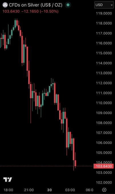 BREAKING: Silver extends losses to -11% on the day, now falling below $104/oz.