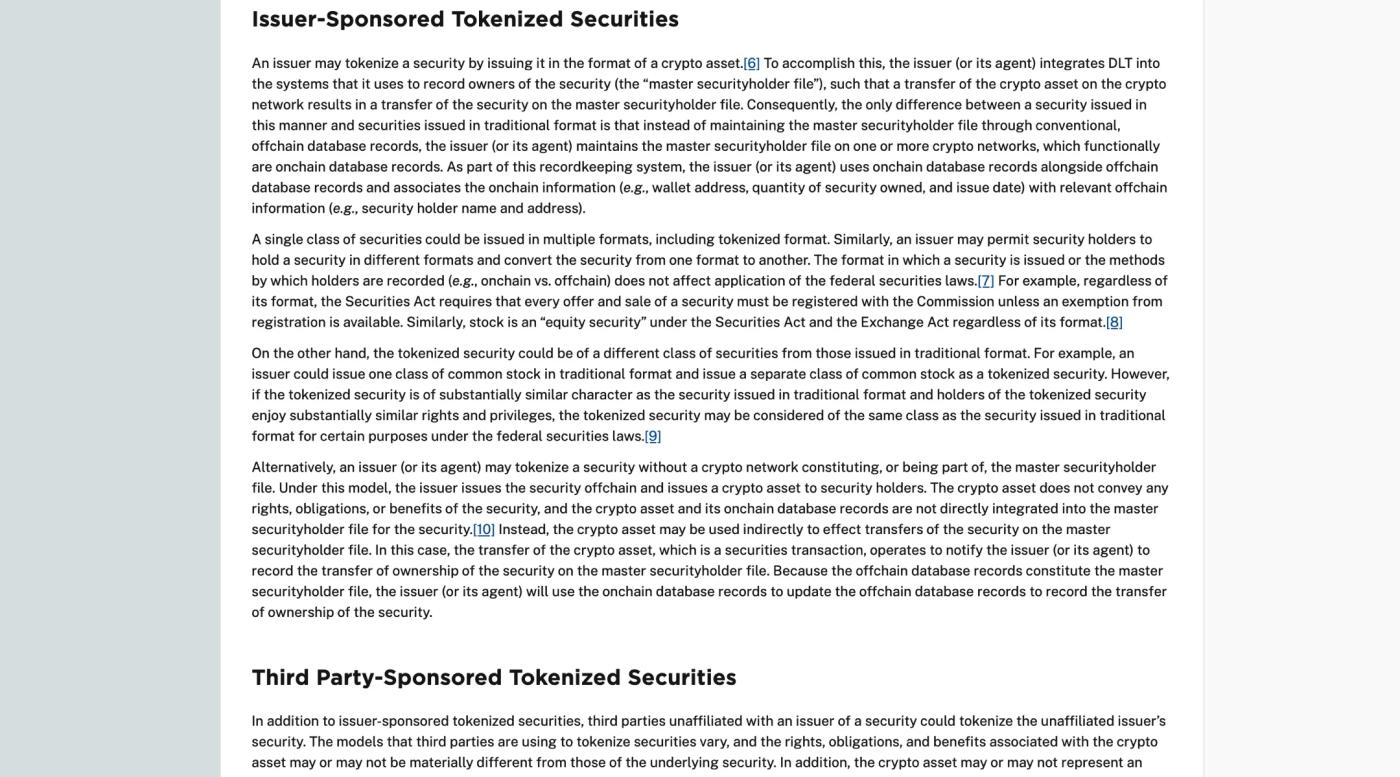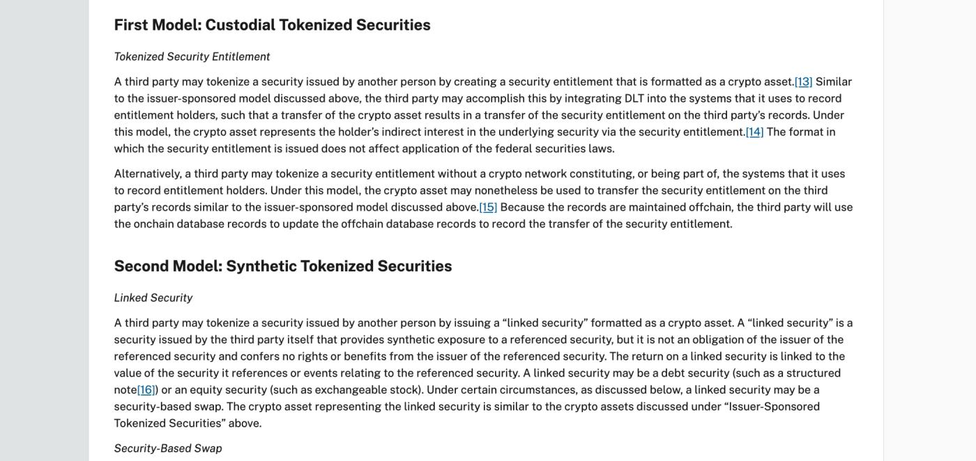 A close reading of the original Statement on Tokenized Securities makes the document’s purpose almost self-evident. Rather than creating a new regulatory framework for tokenized securities, the SEC is trying to answer a more fundamental question: under existing federal securities laws, how should the wide variety of tokenization practices currently seen in the market actually be classified as financial instruments?