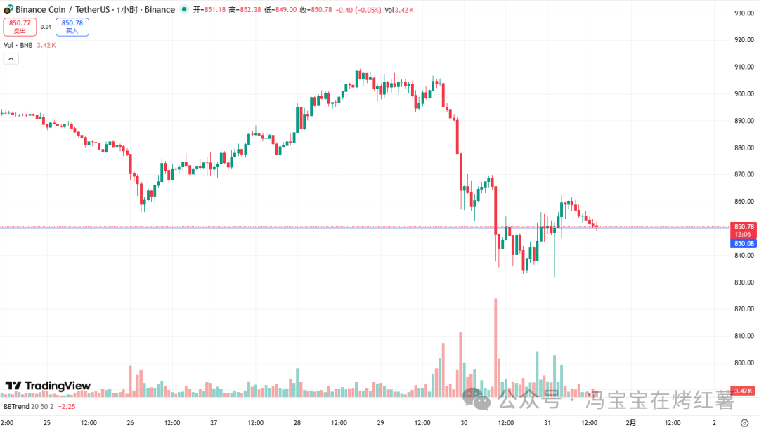 Today, NB is watching the support level around 850. If it doesn't break below this level on the 1-2 hour chart, it may continue to rebound. Resistance levels to watch are around 870, 881, and 890.