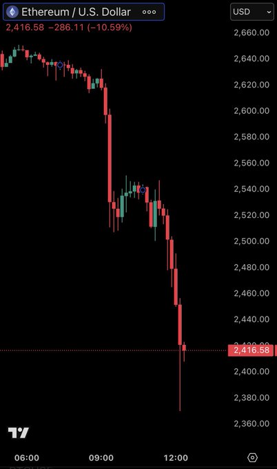 BREAKING: Bitcoin drops below $79,000 and ETH drops below $2,400 as $1.4 billion worth of levered longs are liquidated.