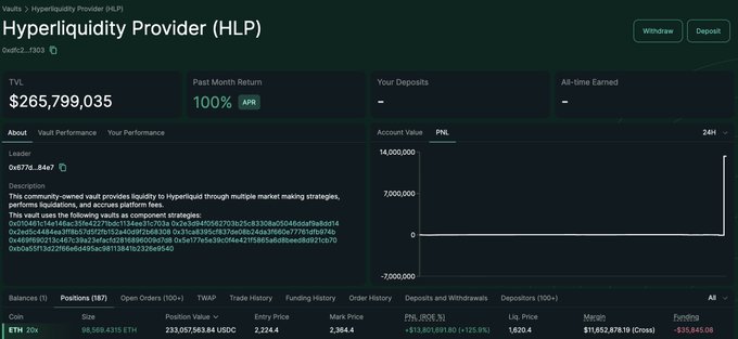 HLP is currently long ~$230M worth of ETH.