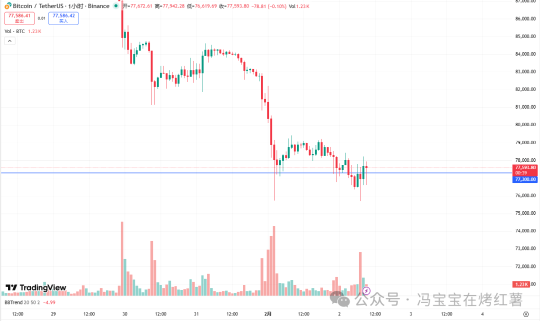Bitcoin's focus today is on 77300. Only if it holds above this level on the 1-hour chart can a rebound be expected. If it does rise, pay close attention to the resistance levels at 79370, 81460, and 83110.