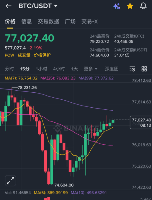 BTC has rebounded and broken through 77,000, which has had a certain short-term impact on the price, both in terms of sentiment and buying pressure.