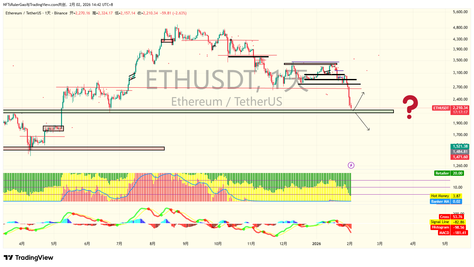 Nobody expected such a sharp drop at the end of January and beginning of February. The market hasn't shown any significant downward spikes yet, so just wait and see! Don't open any trades recklessly; haphazard trading in this volatility could easily wipe out your entire capital. ETH's price has now returned to the starting point of its June 2025 rally. If it breaks below 2120, we could see it drop to 1700; if it holds the 2120 support level, there's a high probability of a rebound to 2410.
