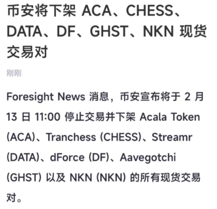 Binance delisted six coins at once, making this market increasingly difficult! Especially coins like $nkn and $aca, which were ridiculously low from the open!! However, $nkn and $chess will likely see a double liquidation of both long and short positions in futures contracts!!