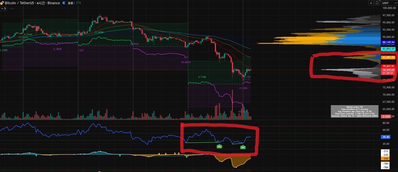 📢 Don't panic and throw away your precious holdings. (2026-02-03) I know you're feeling incredibly distressed watching your account melt away due to the recent decline. It's been a while since I've shared my long-term perspective. The charts and data are screaming, "Now is not the time to run, but to hold on tight." We'll provide an easy-to-understand summary of the "rebound signals" and "the true intentions of the forces" that we've been blinded by fear. 1️⃣ The Strongest Signal: "Selling Force Has Run Out" (Divergence) Are you feeling anxious as the price continues to fall? However, what's more important than price is the "selling force." Significance: Bitcoin's price has fallen further, but the RSI indicator is actually rising. This has happened twice in a row on the highly reliable 4-hour chart. Meaning: Sellers have tried their best to suppress the market, but they've now lost all their strength. Historically, these signals have been followed by a strong trend reversal (upward trend). 2️⃣ Recovery Highway: "The Selling Area is Empty" You might be wondering, "How much has it fallen? When will it recover?" However, a closer look at the chart reveals a surprisingly open path. Fact: Just above the current price, the area between $79,000 and $82,900 is a vacuum with virtually no trading volume. Outlook: Just as a car speeds along when a congested road clears, once Bitcoin clears the $79,000 threshold, it can quickly recover to $82,000 without any blockers (malicious selling). 3️⃣ Traces of Power: "When the Ants Throw, They Pick Up" The data (CVD) reveals an interesting phenomenon. Situation: While fearful selling is pouring in at the market price, the price is holding steady at the 50-EMA (30-minute chart). Interpretation: This is evidence that someone is eating up all that sell-off volume (accumulation). The coins you threw away out of fear are now ending up in the wallets of whales. ⚠️ [Important] How to Avoid Being Taken by the Powers Even if this bear market isn't completely over, the powers aren't lowering the price any further. Why? Because they need to bring retail investors back into the market. Giving Hope: A strong rebound from the bottom reassures panicked investors and makes them press the buy button again. Selling Volume: After raising the price sufficiently, they sell their holdings at a high price to the retail investors who follow suit. Shock Therapy: Afterwards, they create another large drop to drive out the retail investors. In other words, there's a very high probability that the powers will create a "significant rebound" for the time being, if only to sell their holdings. 💬 Conclusion: Selling now is the worst option. Of course, it would be ideal if this rebound continues and a bull market breaks through the previous high, but it's not too late to decide that later. There's just one thing holders should remember now: "Even if this rebound is a 'fake rebound,' it's much more profitable to sell when the rebound comes than to panic and sell at the bottom now." Wait for the rebound wave created by the forces. And if you need to cash out, do so then. Now is the time to hold on and avoid being taken advantage of. Data doesn't lie. Stay strong! 💪🚀 This is not investment advice. Please use it for reference only.