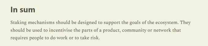 However, the same article also points out that "staking mechanisms should serve the long-term goals of the ecosystem."