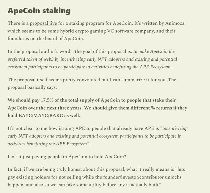 This design also carries some risks, and there are historical precedents of similar mechanisms causing problems. See Cobie's article for a case analysis: "The Failure of ApeCoin and its Staking Mechanism".
