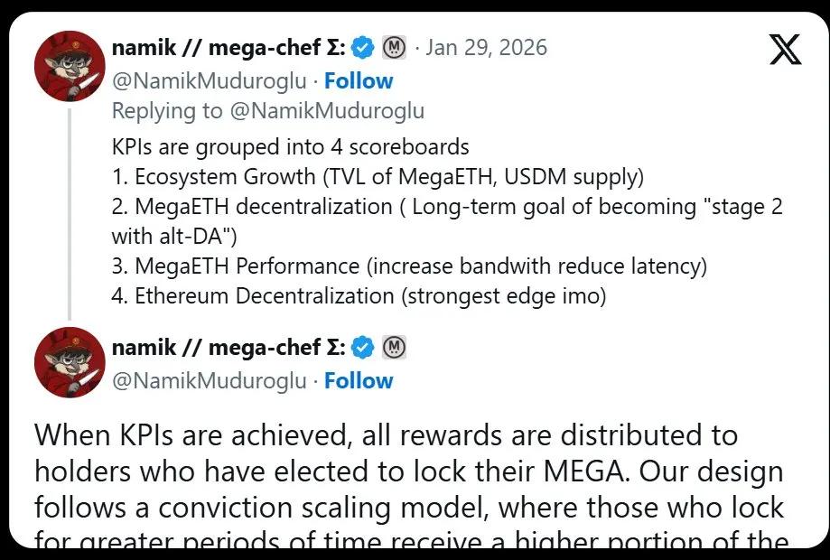 Therefore, in a bear market where the ecosystem is not growing, at least no more tokens will flow into the market and dilute holders. MEGA tokens will only enter the market when the MegaETH ecosystem truly grows (as defined by KPIs).