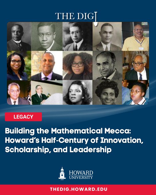 Howard didn’t just build a math department. It built a legacy. From launching the nation’s first Ph.D. in Mathematics at an HBCU in 1976 to shaping generations of scholars and global research, Howard University has long been a center for mathematical excellence, leadership, and innovation. Fifty years in, the vision of a “Mathematical Mecca” continues through groundbreaking scholarship, mentorship, and impact that reaches far beyond the Yard. Read more on The Dig: thedig.howard.edu/all-stories/...… #HowardUniversity #STEM #mathematics