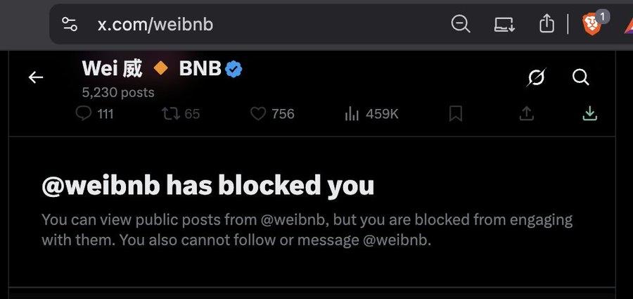 What's even more intriguing is that this account, with 863,000 followers, had already blocked CZ.
