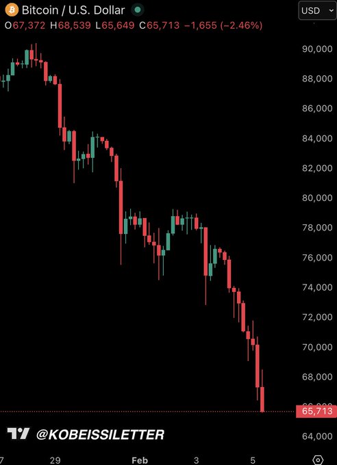 BREAKING: Bitcoin falls below $66,000 for the first time since October 2024, now down -$11,000 this week alone.