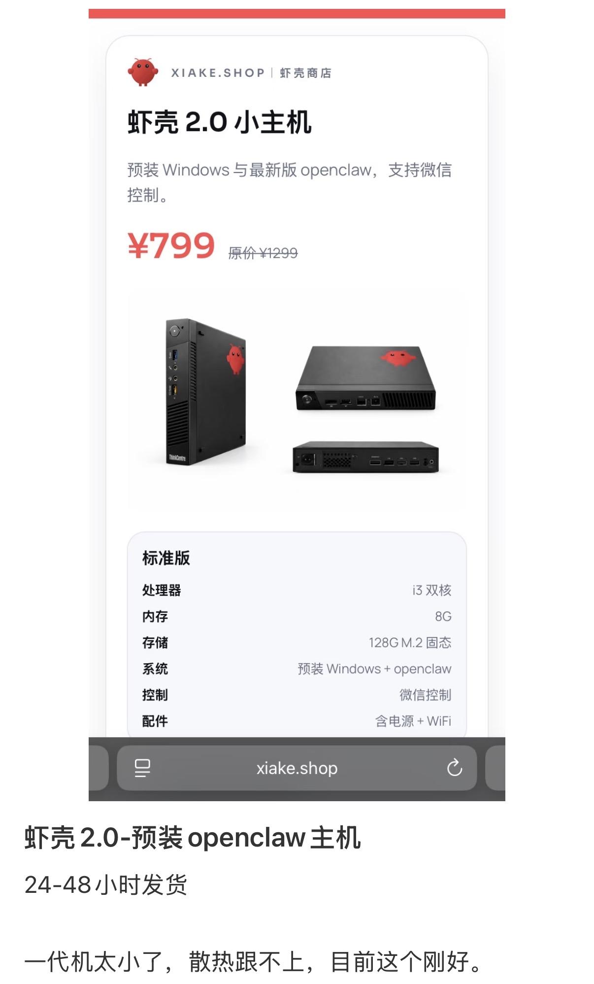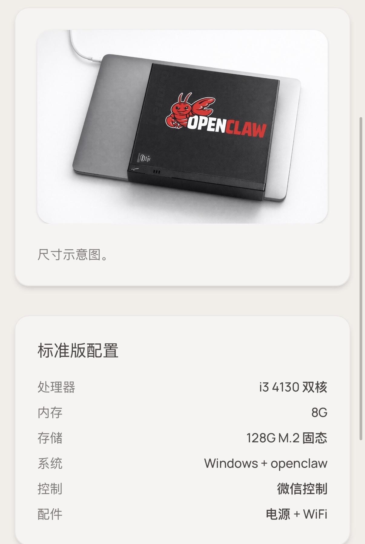 On January 28, just after Alibaba Cloud launched its cloud service version, pre-built hardware host boxes specifically designed to run OpenClaw quickly appeared on the market. This means that previously, users had to go through the trouble of deploying using a Mac mini, but now they can simply buy the "Huaqiangbei AI Special Edition" box and plug it in to run.