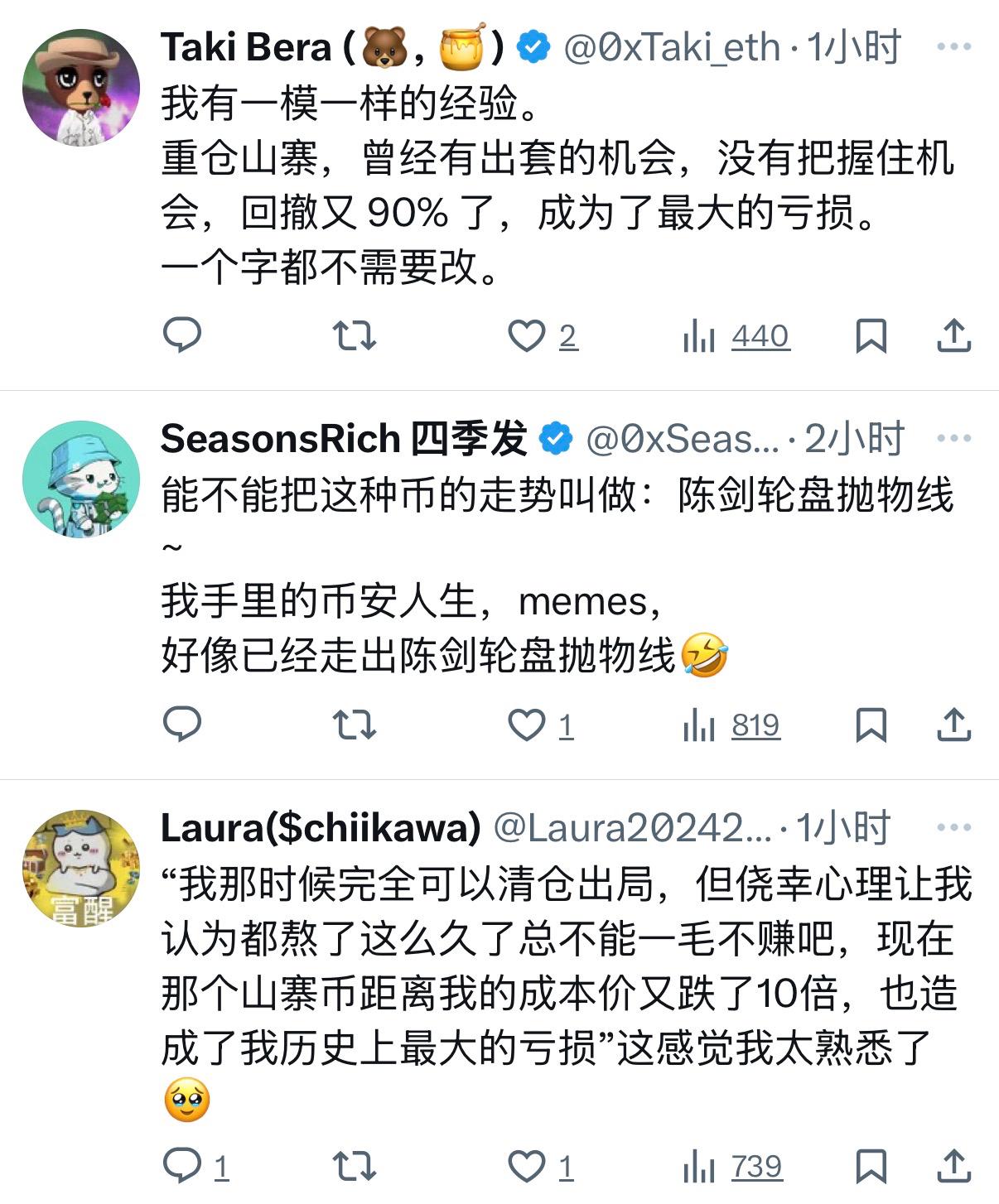 This resonated with many investors. Some shared their painful lessons: their long-term losses on Altcoin finally recovered to their cost price, but they missed the chance to escape because they were greedy, thinking "I can't lose everything," and the price eventually plummeted by 90%. Everyone lamented: you have to believe in fate. That moment when you break even is the market's opportunity for "self-redemption."