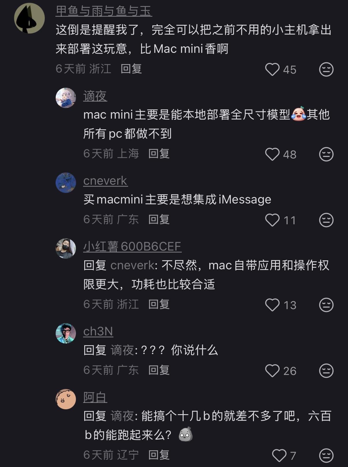One netizen said that I could take out my old mini PC and run OpenClaw. Another netizen replied that the Mac mini can deploy all models locally at full size, while most others cannot. The difference between them is like the difference between the iPhone Pro Max and the iPhone mini, both of which are "iPhones".