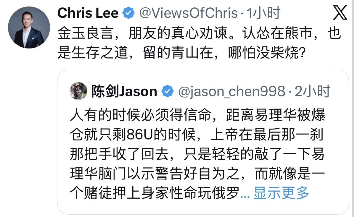 During the recent market crash, his leveraged trading order was just $86 away from being forcibly liquidated when the market rebounded. Crypto KOL Chen Jian described it as: "At the last moment, God withdrew his hand and only gently tapped Yi Lihua on the forehead as a warning."