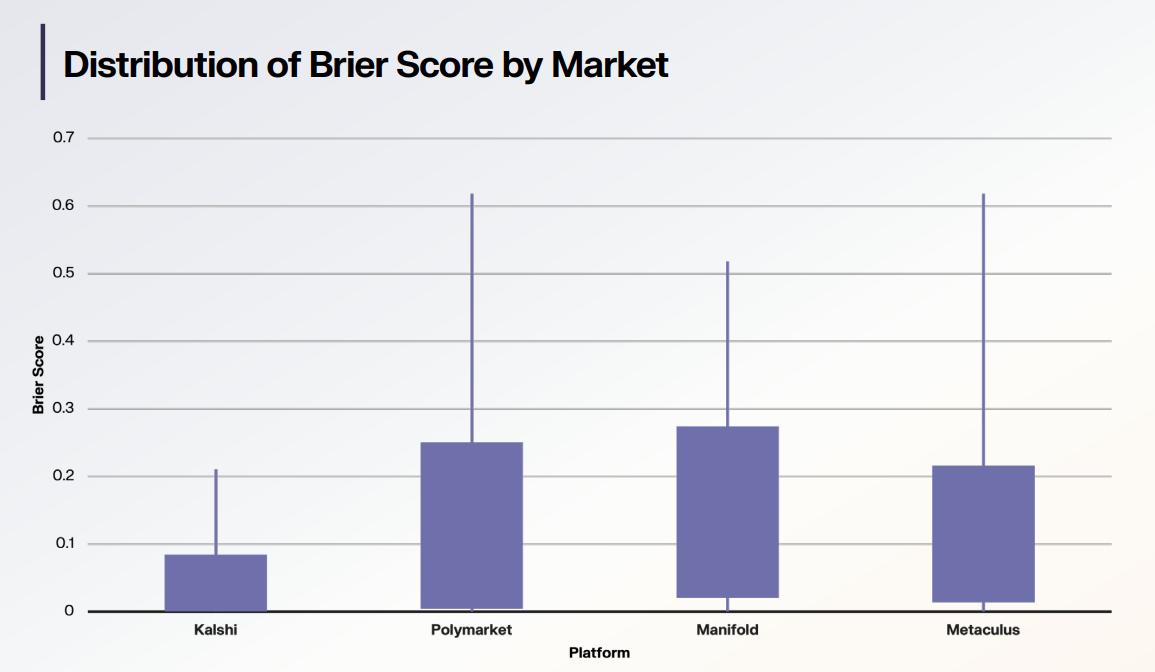 Both Polymarket and Kalshi maintained low levels on the Brier Score (lower is better), a measure of predictive accuracy . In contrast, the typical Brier Score for US election polls is 0.15–0.20, and experts judge it to perform even worse in complex geopolitical events.