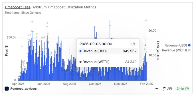 Daily Timeboost Fees (in ETH Terms) hit another record high yesterday with BTC dropping from $73k to $60k in a single day. Arbitrageurs are benefiting from the volatility to capture MEV revenue. As a result, the DAO earned $50K in a single day from Timeboost