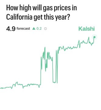 @Kalshi forecasts California gas will hit nearly $5 while much of the country pays under $3.