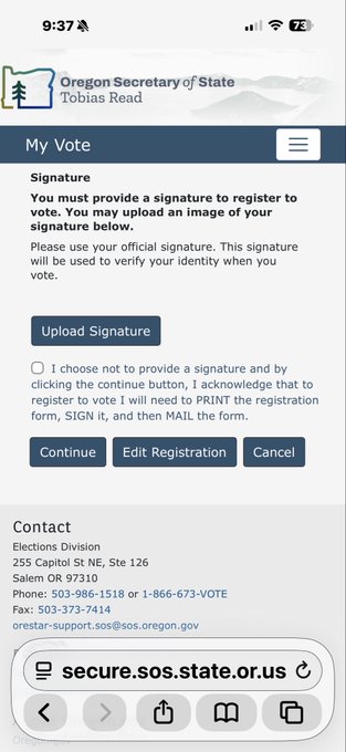 I just registered to vote in Oregon with a fake name, date of birth and fake address, no email required, no citizenship verification, no ID check. All I had to do was provide my fake signature with my fake name.