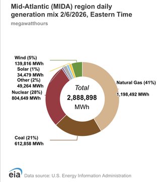 Renewables are failing again. Temperatures today in the Mid-Atlantic and New England are struggling to get out of the single digits and teens. Most of New York is below zero. It is the coldest air of the season so far for this region. In the Mid-Atlantic, natural gas, coal and nuclear are supplying 90% of the electricity to homes and businesses. New England is burning oil. Solar and wind combined are supplying less than 8% of total generation. The people who demonize fossil fuels are sure benefitting from them today.