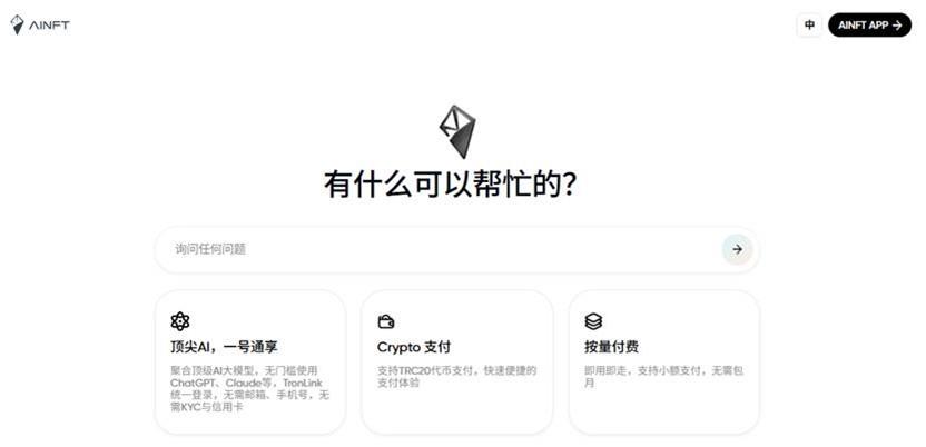 AINFT's AI large model aggregation platform has integrated multiple mainstream and top-tier AI large models, including ChatGPT, Claude, and Gemini, providing convenient API interfaces and deep integration with the TronLink wallet. Users can log in with one click through the wallet without KYC and can directly pay for AI model calls using cryptocurrencies such as USDT, TRX, and NFT.