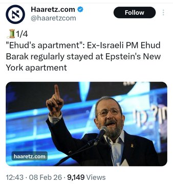 Israel’s oldest daily newspaper, Haaretz is reporting on former Israeli Prime Minister Ehud Barak regularly staying at Epstein’s house even after he was convicted of raping a 14-year-old girl.